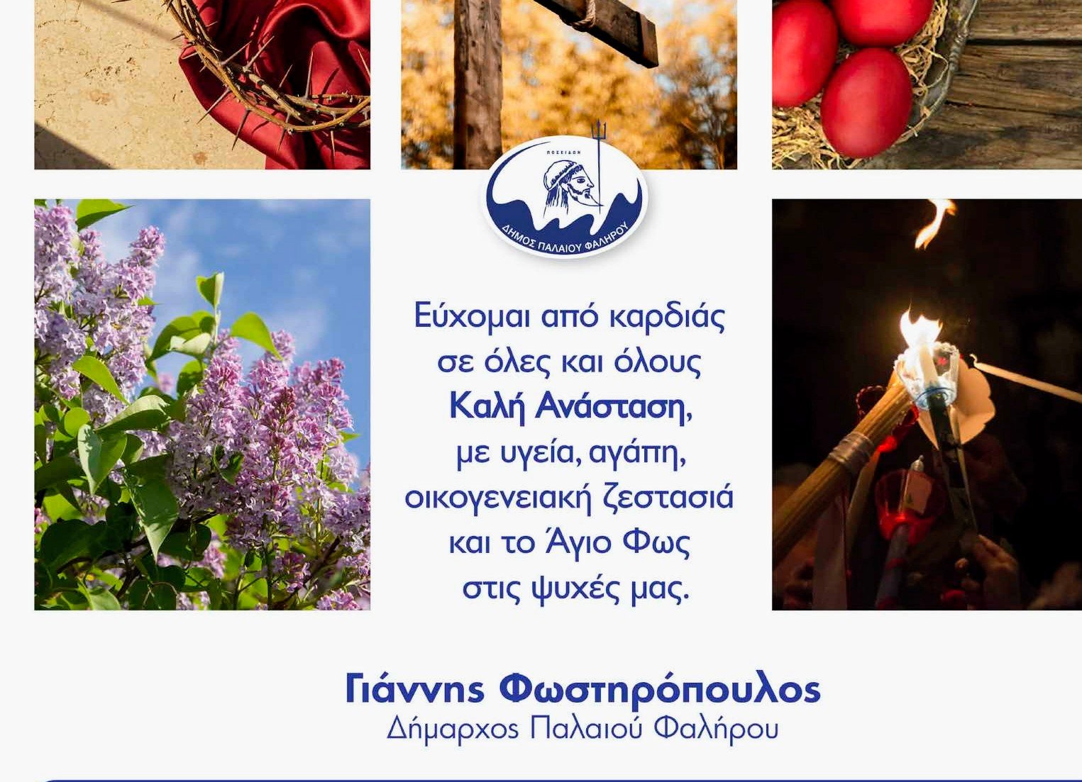 Ο Δήμαρχος Παλαιού Φαλήρου, Γιάννης Φωστηρόπουλος, εύχεται στους δημότες και κατοίκους Καλό Πάσχα, με υγεία,...