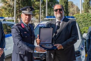 Η Ελληνική Αστυνομία παρέλαβε πέντε (5) νέα οχήματα, τελευταίας τεχνολογίας, τα οποία αποτελούν ευγενική χορηγία του εφοπλιστή κ. Νικόλα Πατέρα.