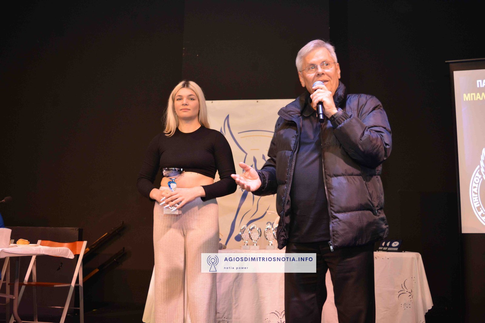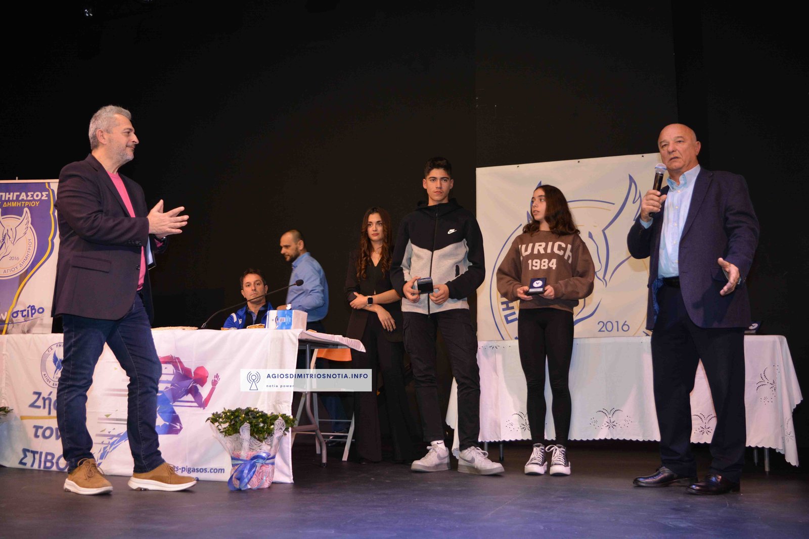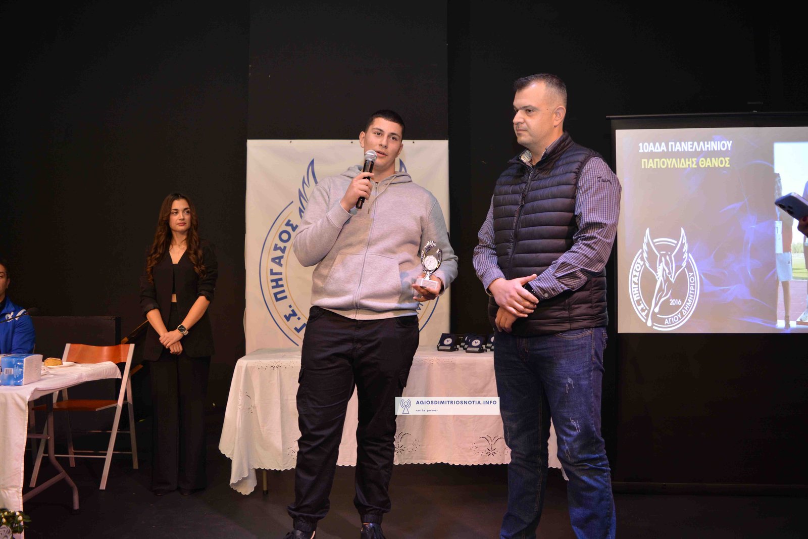 Τιμητικές πλακέτες απονεμήθηκαν στην κα Παναγιωτοπούλου Βασιλική για την πολυετή προσφορά της στον ελληνικό αθλητισμό και στον πρώην πρωταθλητή και κάτοχο μέχρι σήμερα του Πανελληνίου ρεκόρ στον Μαραθώνιο κ. Ανδριόπουλο Σπύρο για τις επιτυχίες του στον Κλασσικό Αθλητισμό.