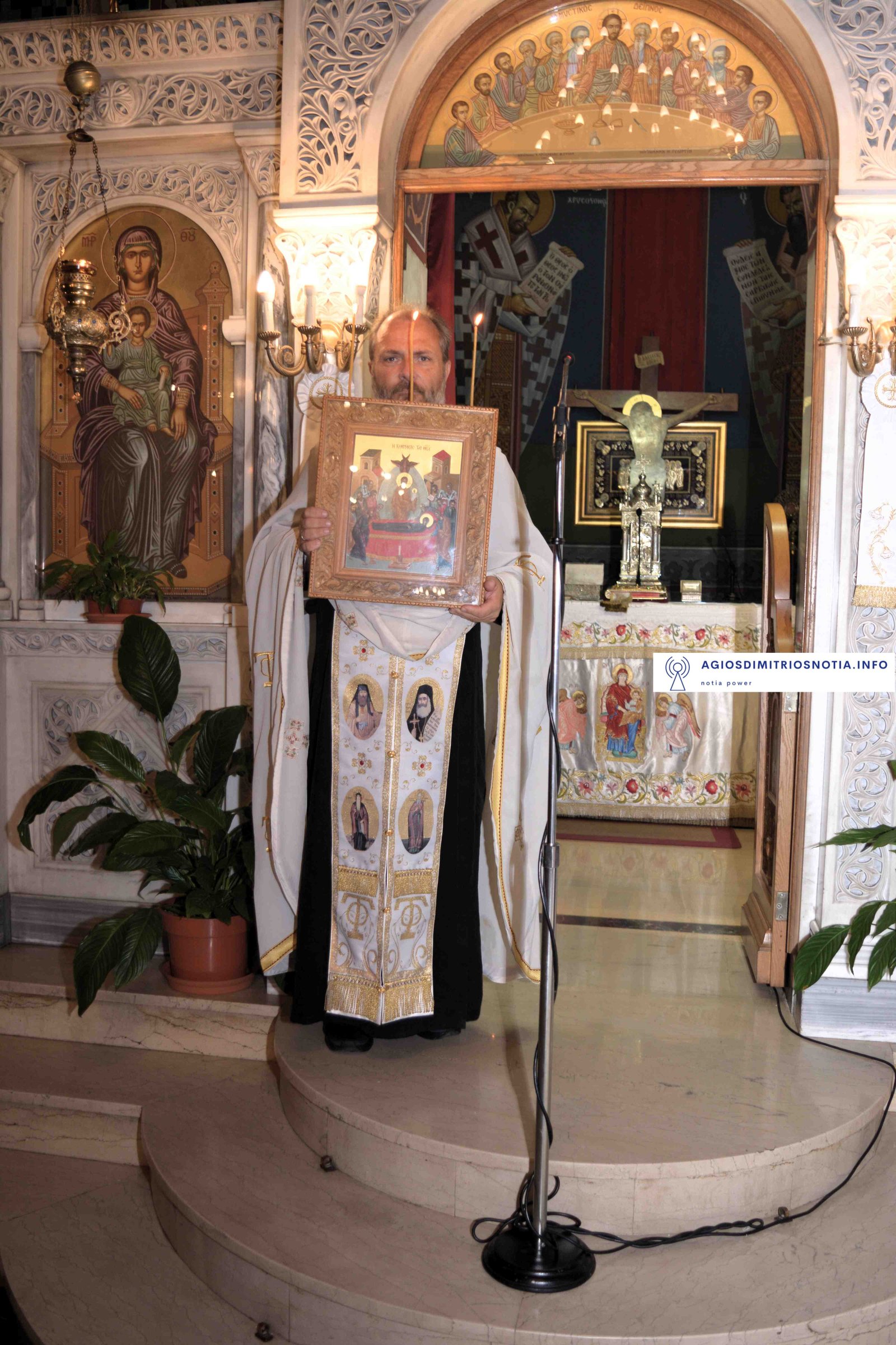 Ακολούθησε η περιφορά της Ιερής Εικόνας την οποία συνόδευσαν κληρικοί, πλήθος πιστών με την συνοδεία Δημοτικών Συμβούλων αλλά και μελών παρατάξεων.