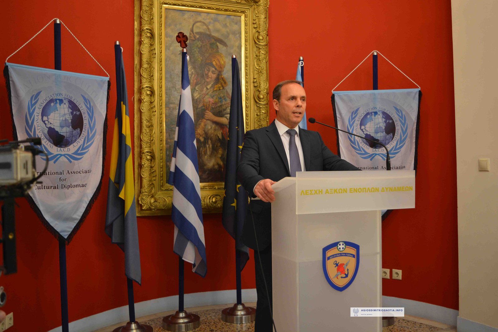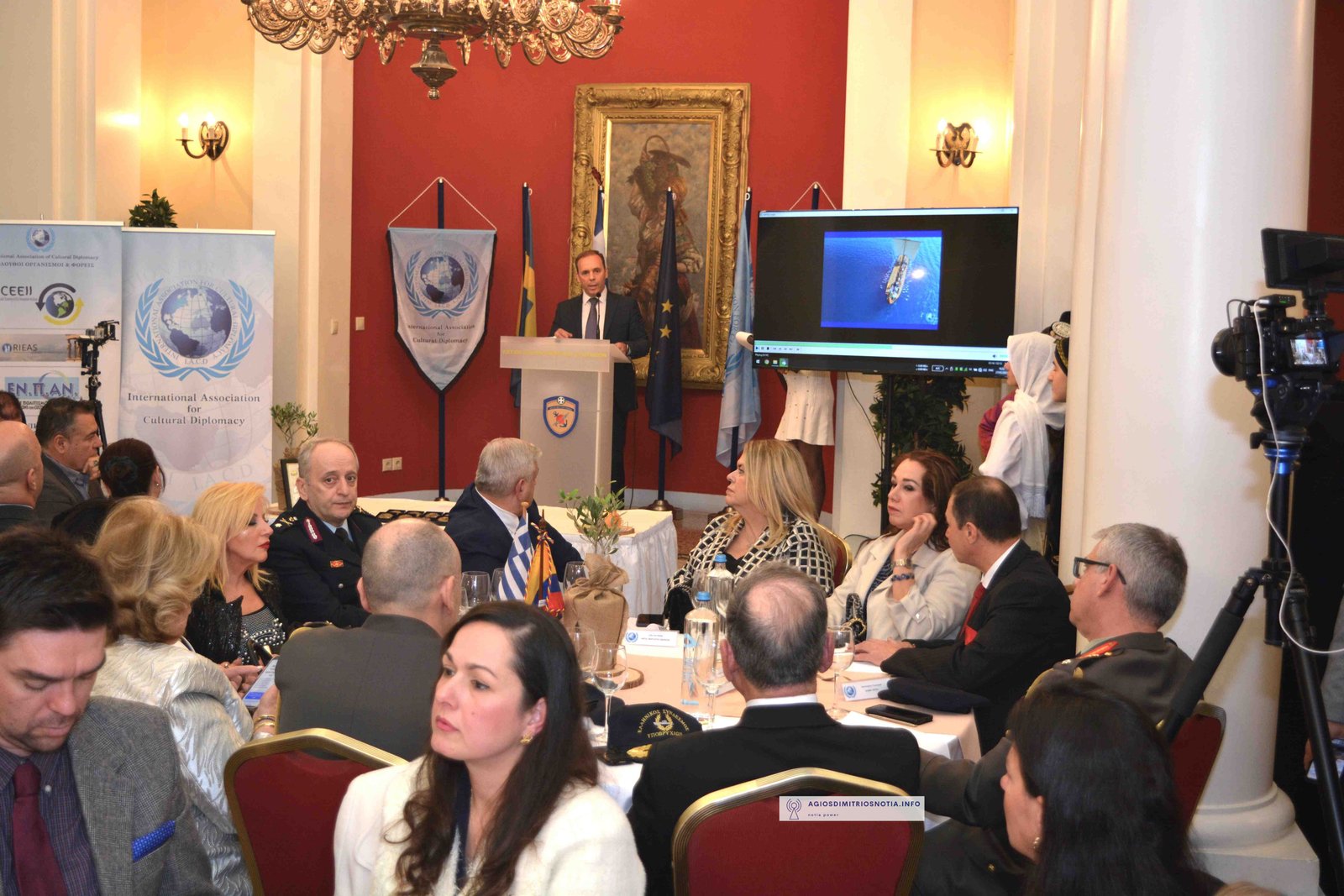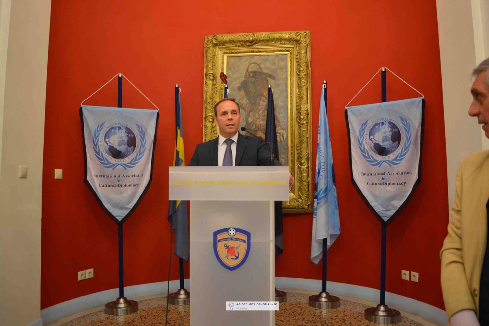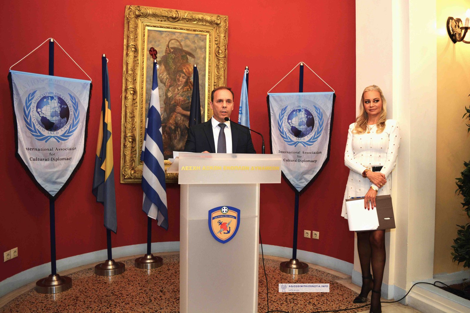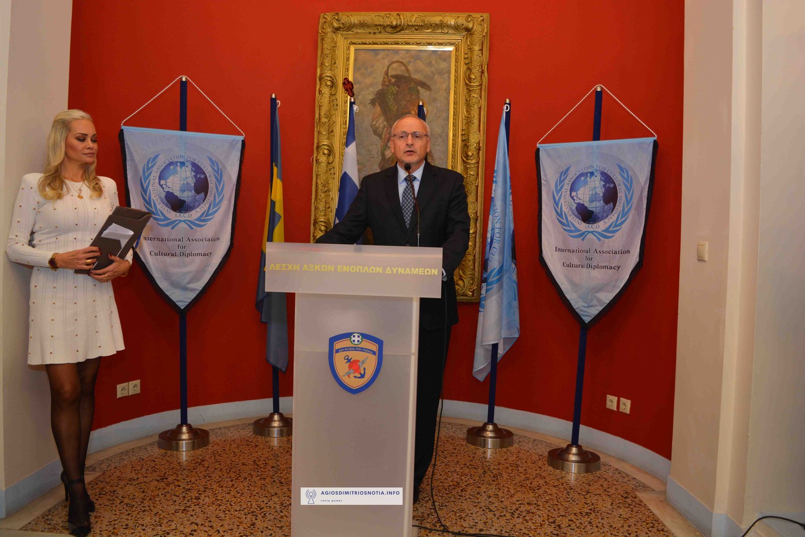 Στον Χαιρετισμό που απεύθυνε ο Αν. Πρέσβης και Διπλωμάτης Διεθνών Σχέσεων του Ελληνικού Διπλωματικού Σχηματισμού κ. Κυριάκος Μαριδάκης είπε ότι ”Η Ελλάδα οφείλει και πρέπει να πρωταγωνιστή για τον πολιτισμό”.