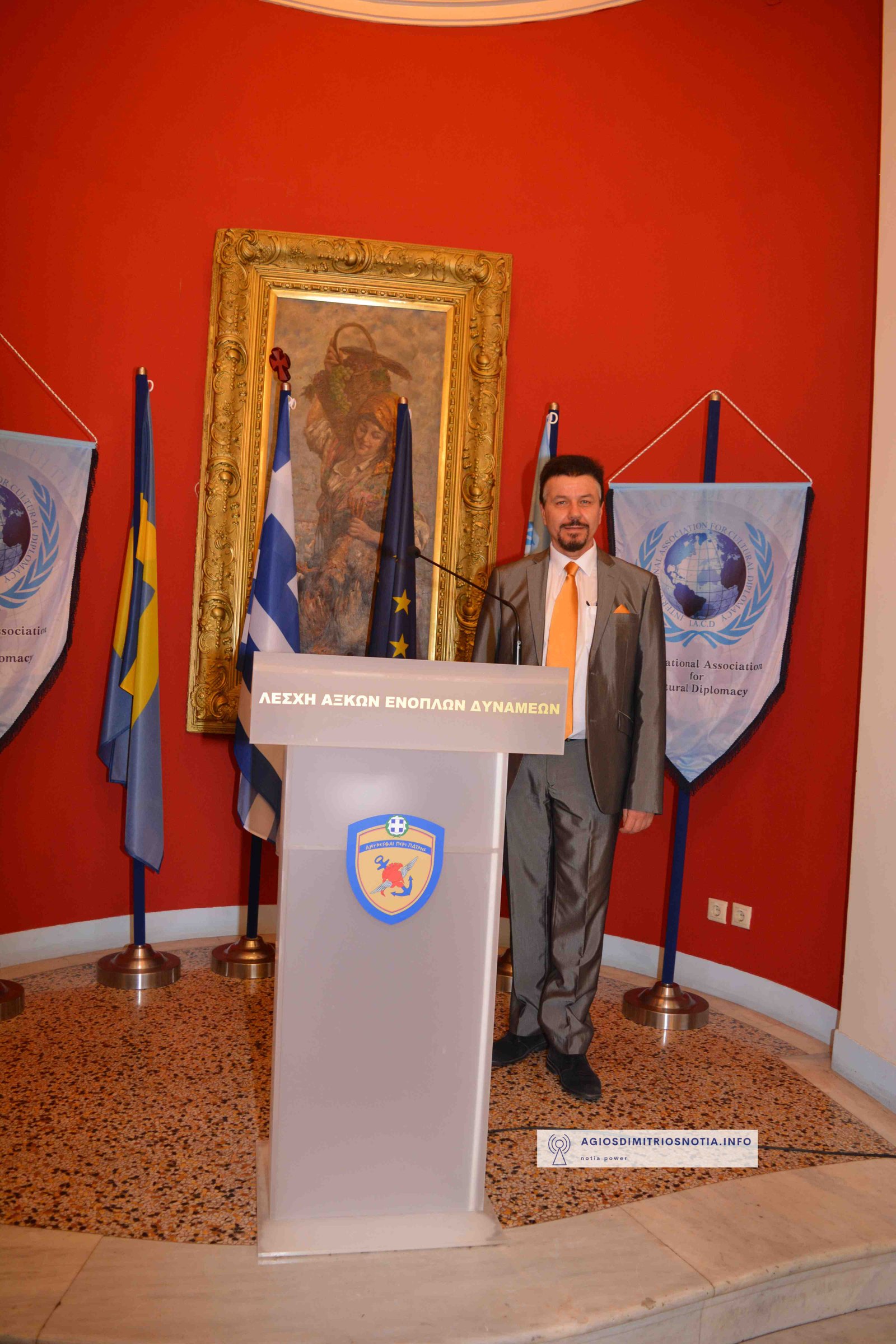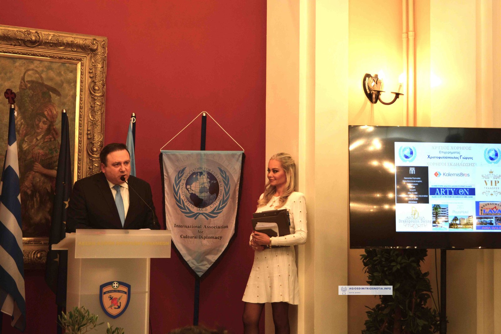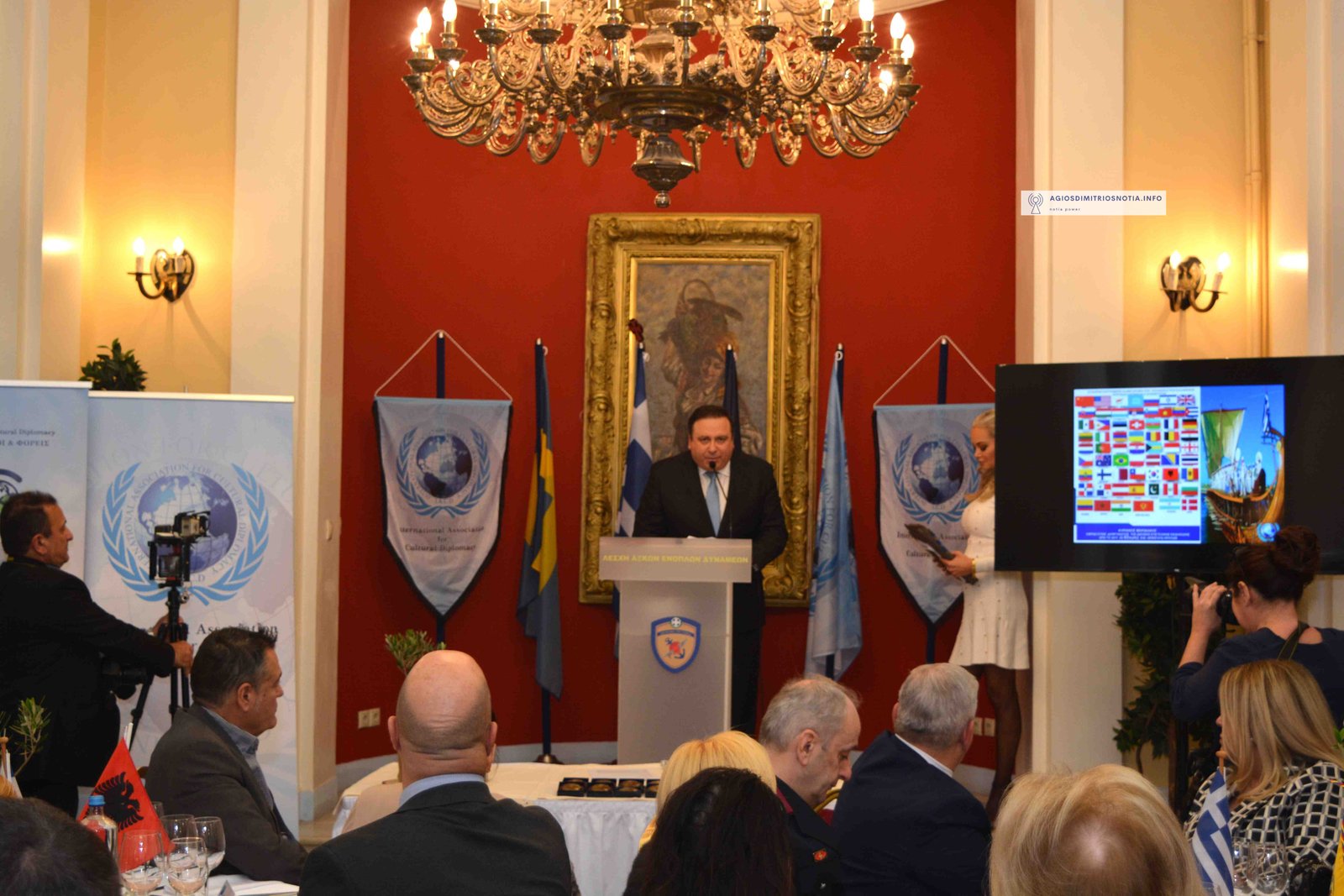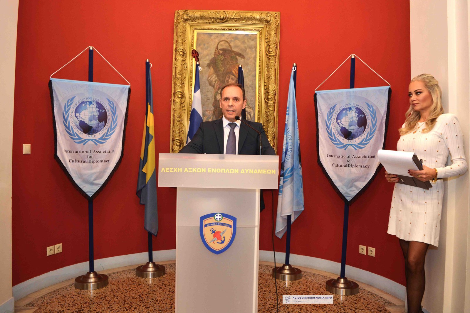 Στον Χαιρετισμό που απεύθυνε ο Αν. Πρέσβης και Διπλωμάτης Διεθνών Σχέσεων του Ελληνικού Διπλωματικού Σχηματισμού κ. Κυριάκος Μαριδάκης είπε ότι ”Η Ελλάδα οφείλει και πρέπει να πρωταγωνιστή για τον πολιτισμό”.