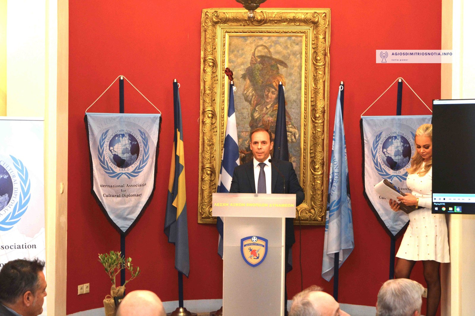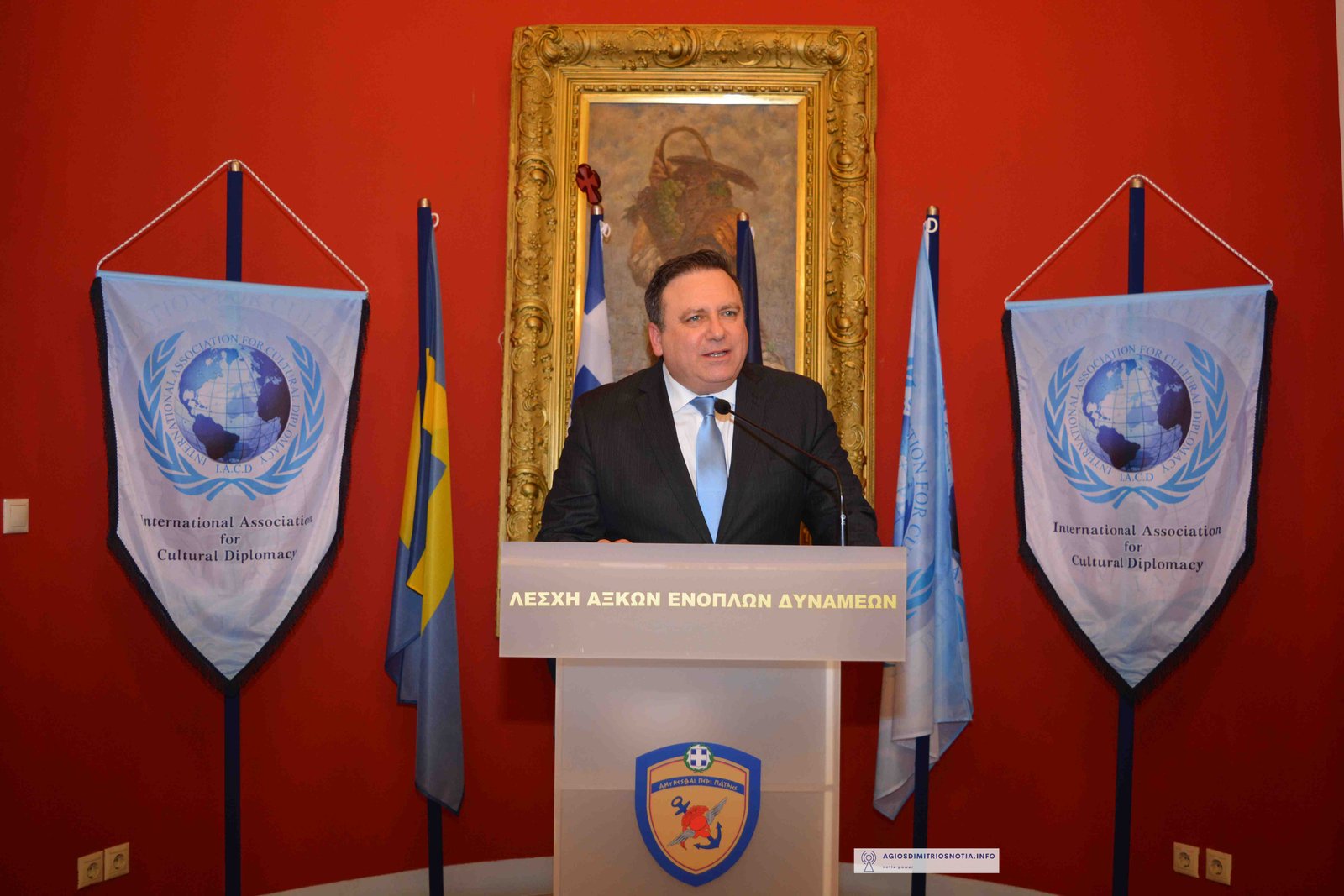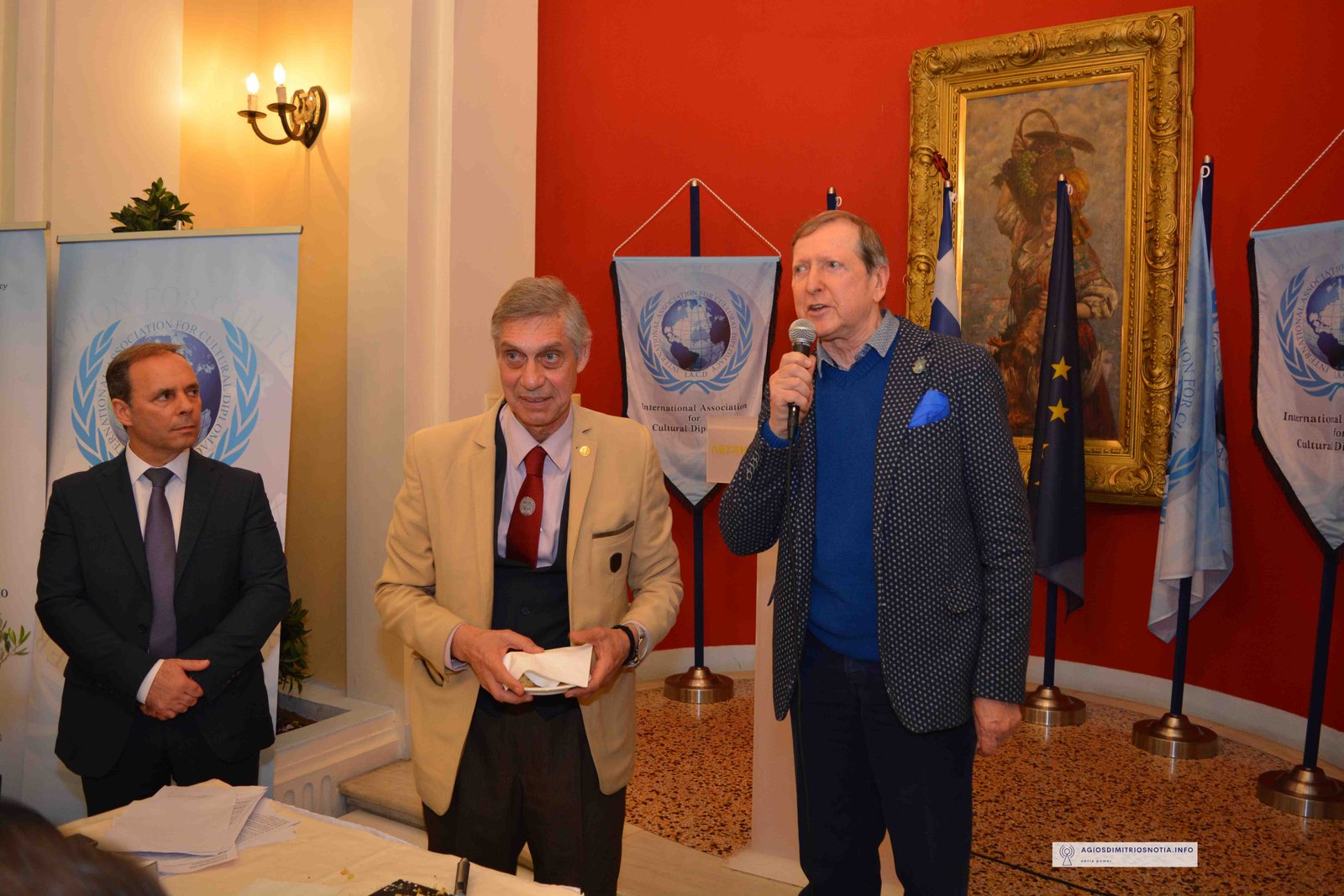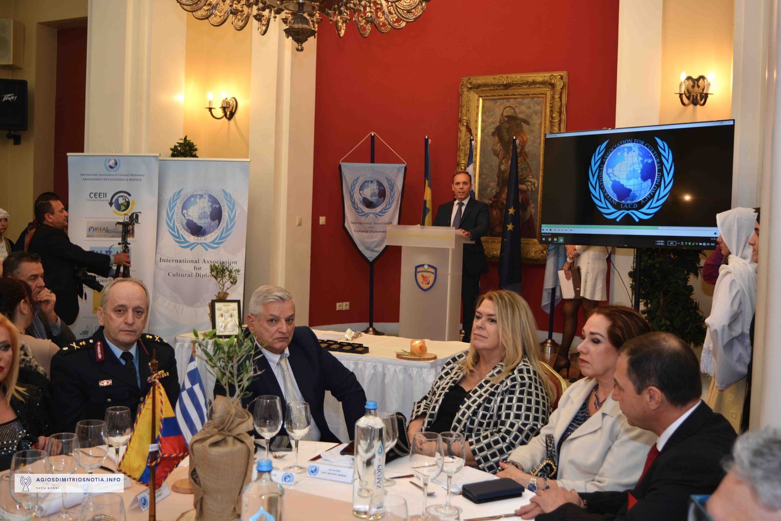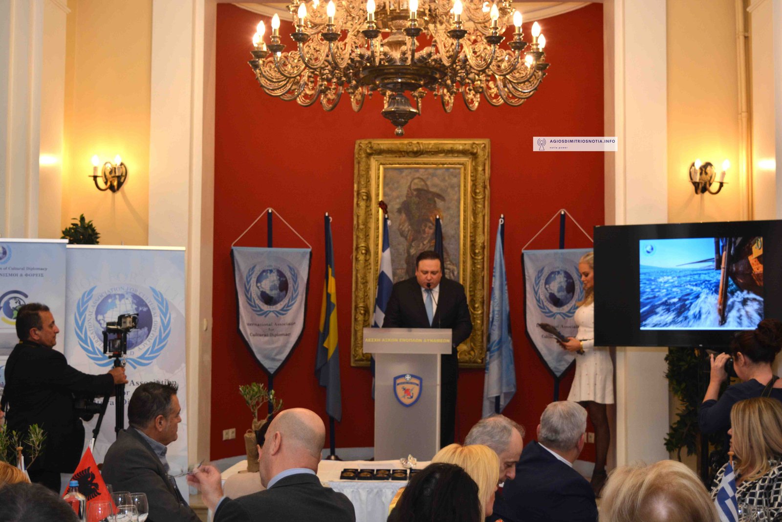 Στον Χαιρετισμό που απεύθυνε ο Αν. Πρέσβης και Διπλωμάτης Διεθνών Σχέσεων του Ελληνικού Διπλωματικού Σχηματισμού κ. Κυριάκος Μαριδάκης είπε ότι ”Η Ελλάδα οφείλει και πρέπει να πρωταγωνιστή για τον πολιτισμό”.