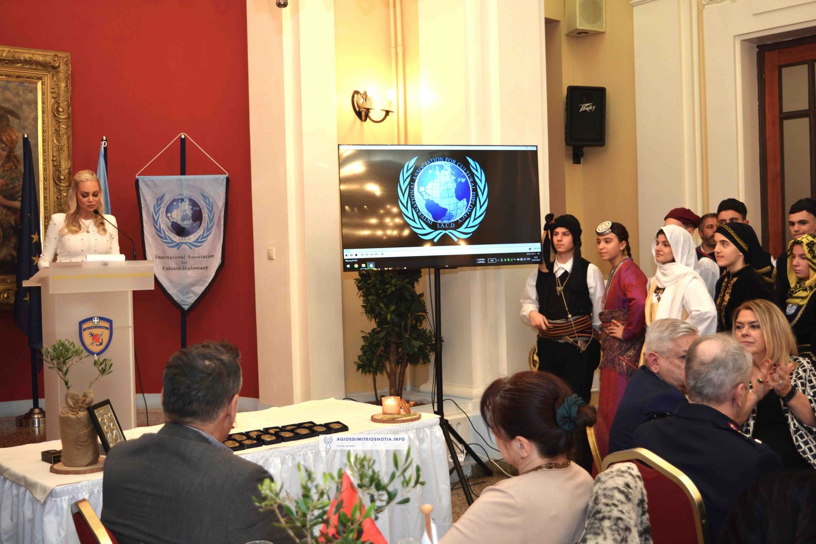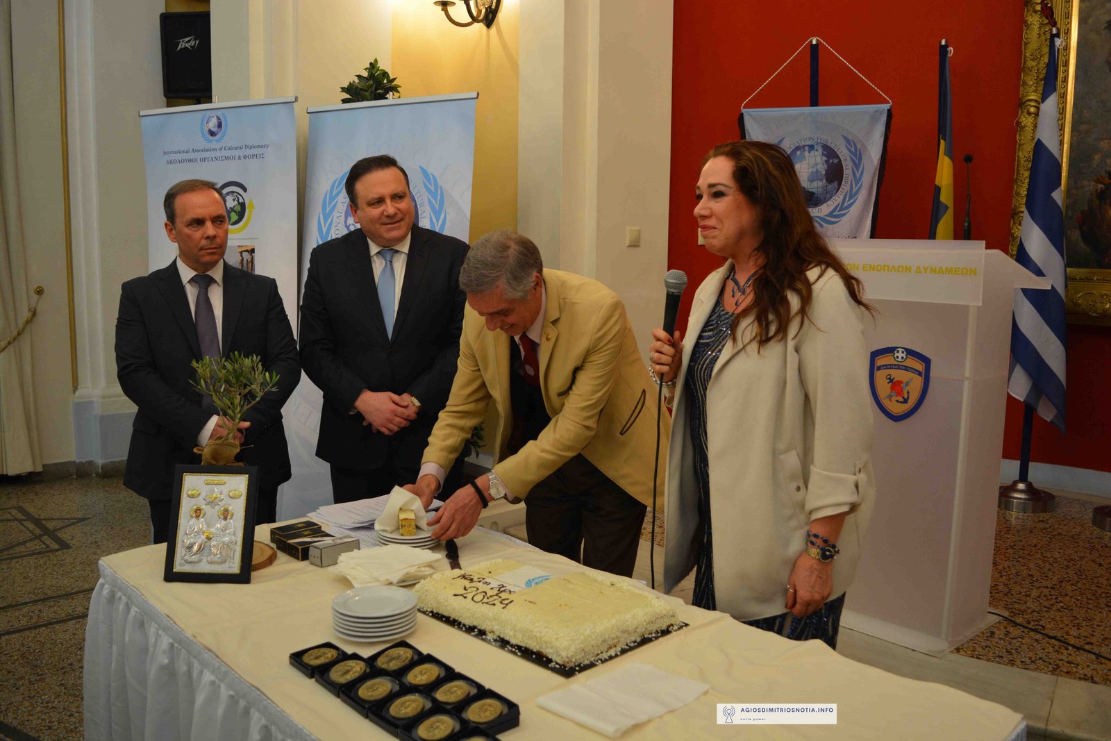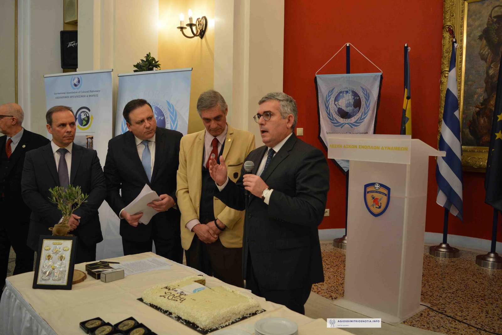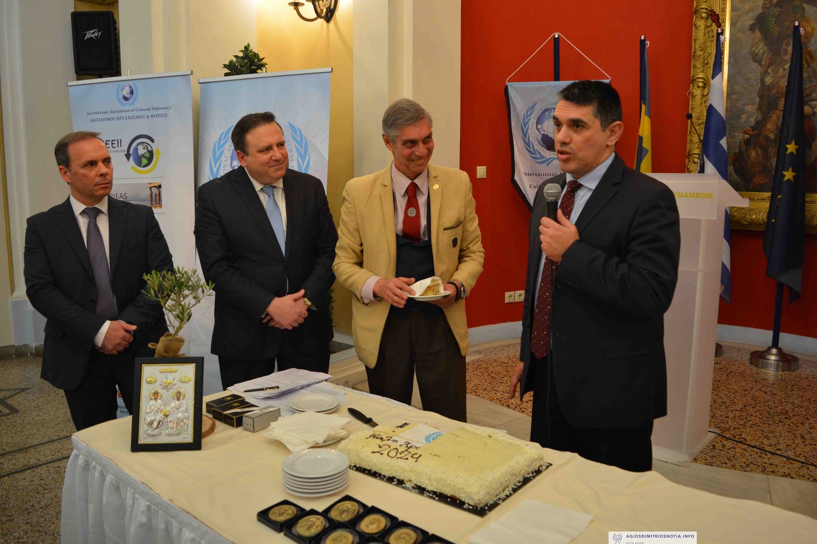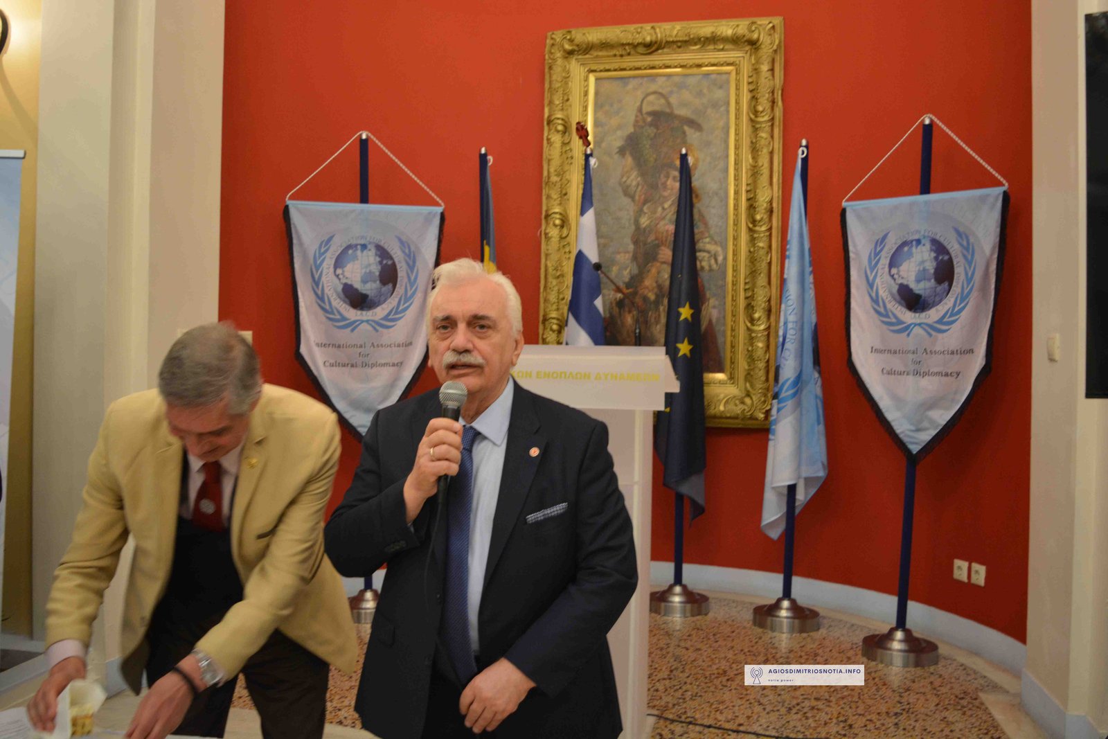 Στο χαιρετισμό του ο Καθηγητής Πρέσβης του Διεθνούς Δικαίου του Οργανισμού για την Πολιτιστική Διπλωματία Δρ Σταμάτιος Γεωργούλης αφού μετέφερε δια ζώσης τις ευχές του Οικουμενικού Πατριάρχη για υγεία και μακροημέρευση τον οποίο συνάντησε αυτοπροσώπως στην Ίμβρο στις 20 Ιανουαρίου 2024, τόνισε ότι ύψιστος στόχος του Οργανισμού είναι να προαγάγει τις αρχές και τα ιδεώδη της ειρήνης και της ειρηνικής συνύπαρξης μεταξύ όλων των λαών της υφηλίου με γνώμονα και με βάσει τις αρχές του Διεθνούς Δικαίου.