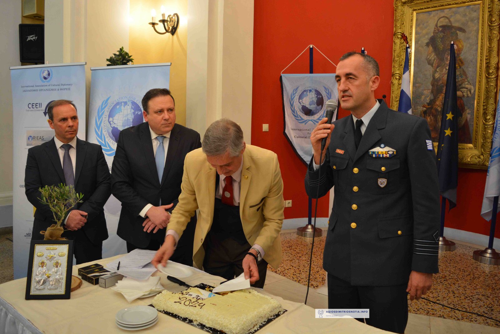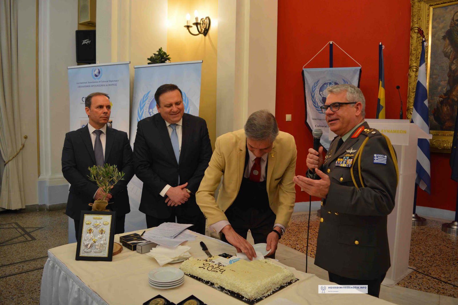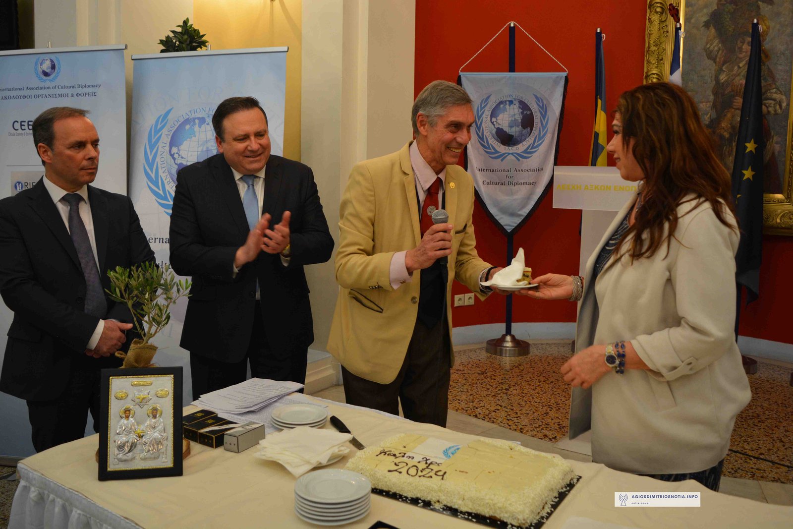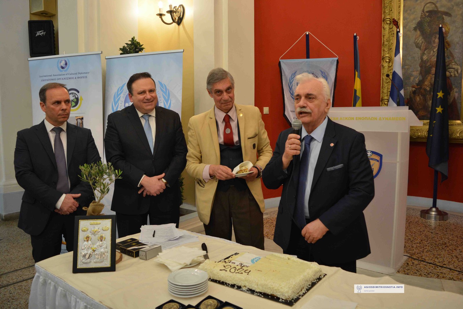 Στο χαιρετισμό του ο Καθηγητής Πρέσβης του Διεθνούς Δικαίου του Οργανισμού για την Πολιτιστική Διπλωματία Δρ Σταμάτιος Γεωργούλης αφού μετέφερε δια ζώσης τις ευχές του Οικουμενικού Πατριάρχη για υγεία και μακροημέρευση τον οποίο συνάντησε αυτοπροσώπως στην Ίμβρο στις 20 Ιανουαρίου 2024, τόνισε ότι ύψιστος στόχος του Οργανισμού είναι να προαγάγει τις αρχές και τα ιδεώδη της ειρήνης και της ειρηνικής συνύπαρξης μεταξύ όλων των λαών της υφηλίου με γνώμονα και με βάσει τις αρχές του Διεθνούς Δικαίου.