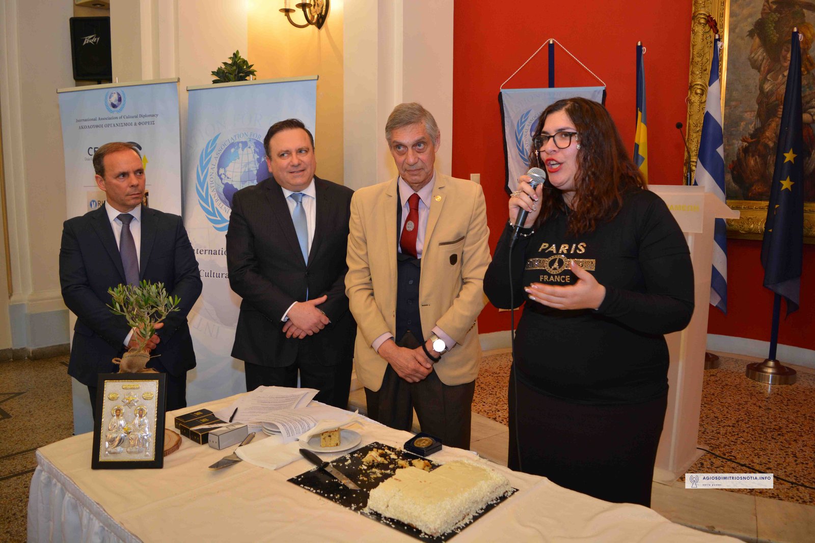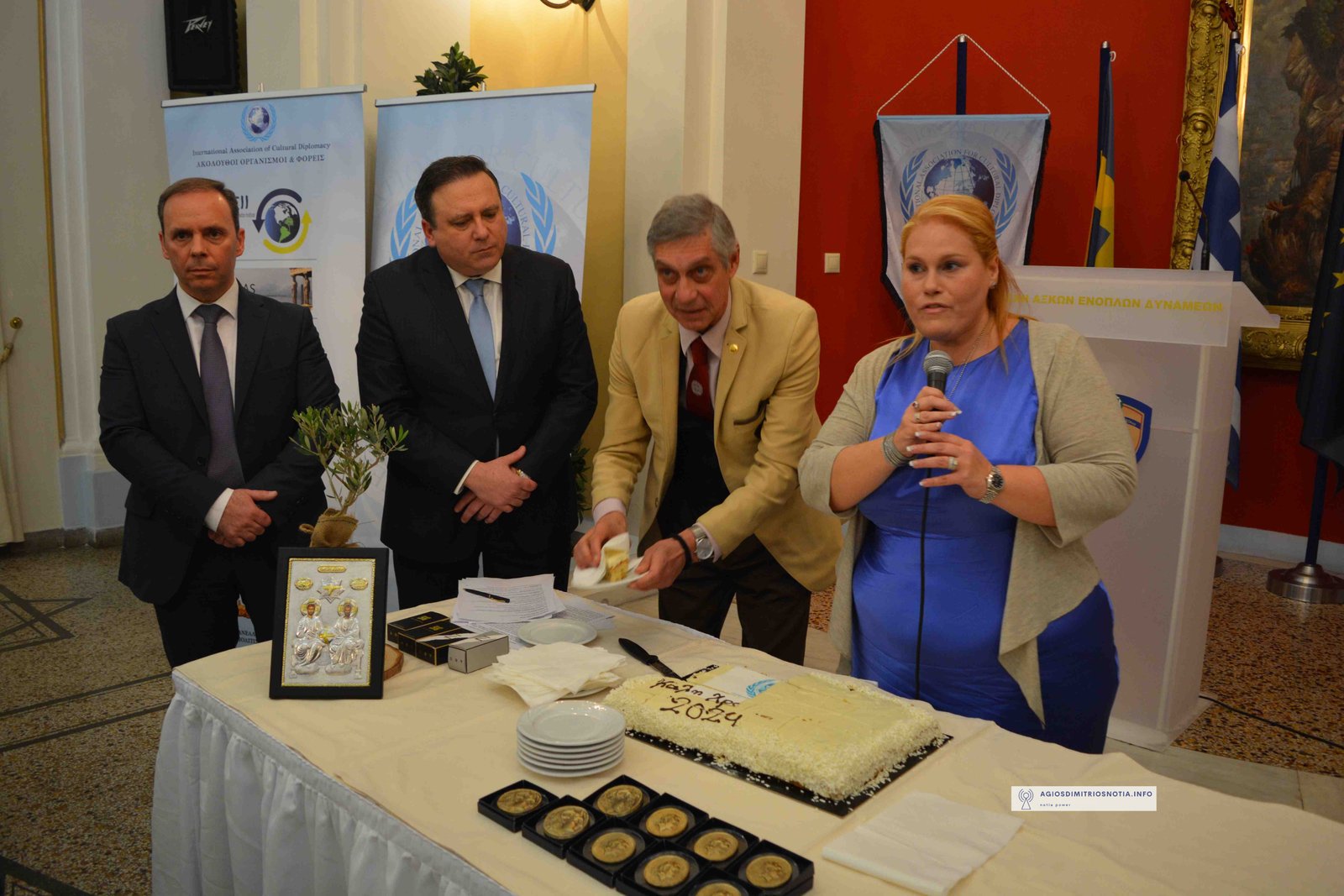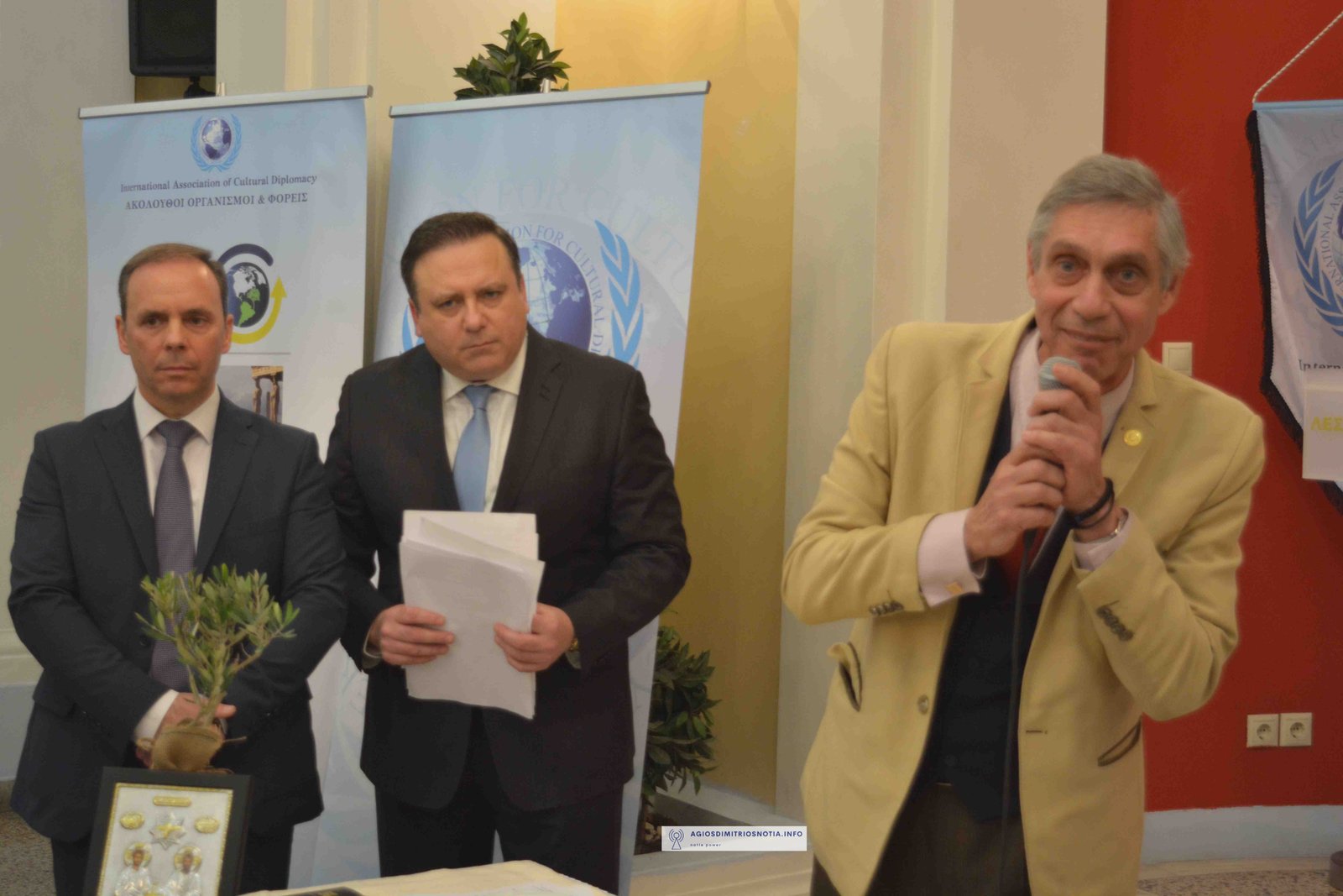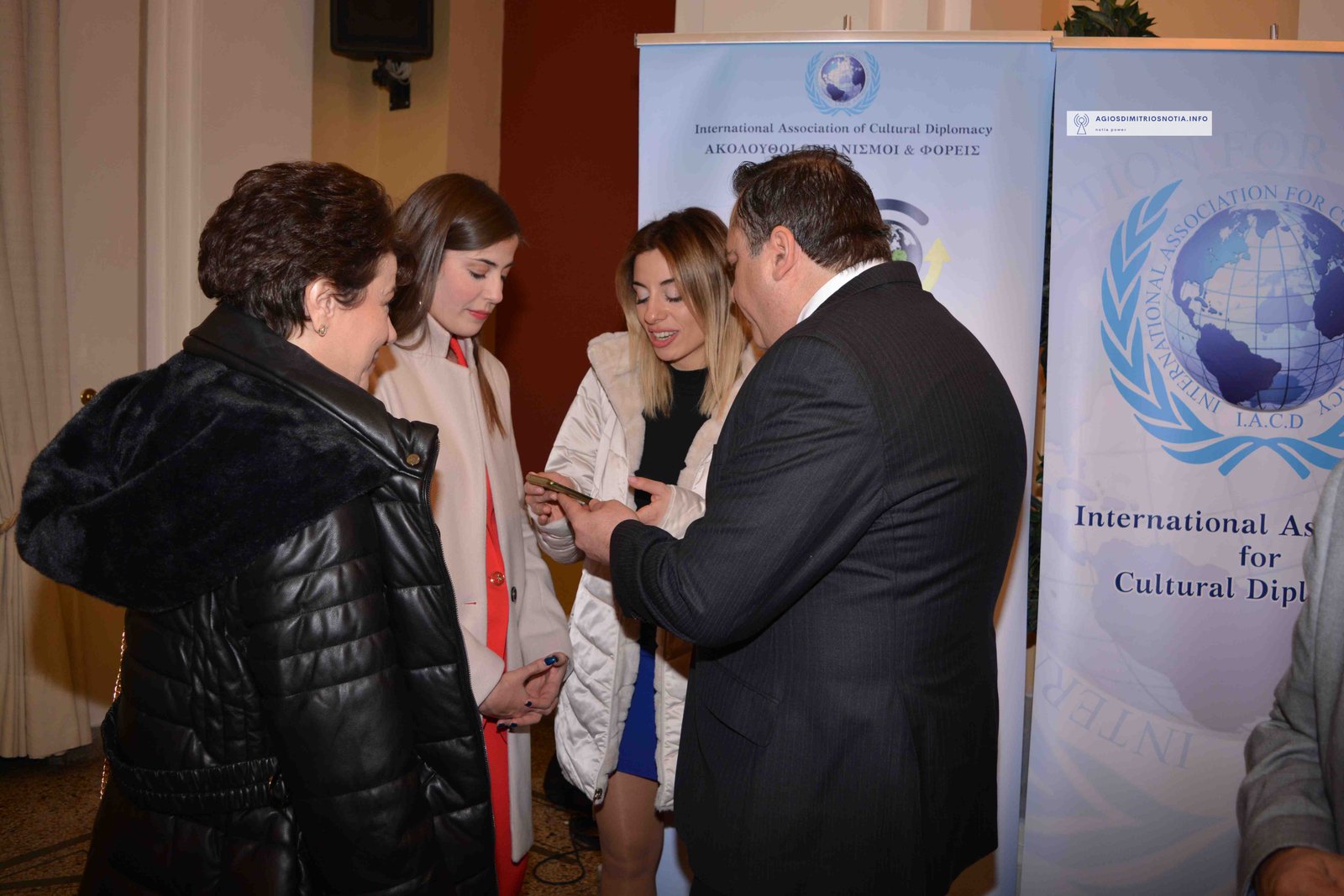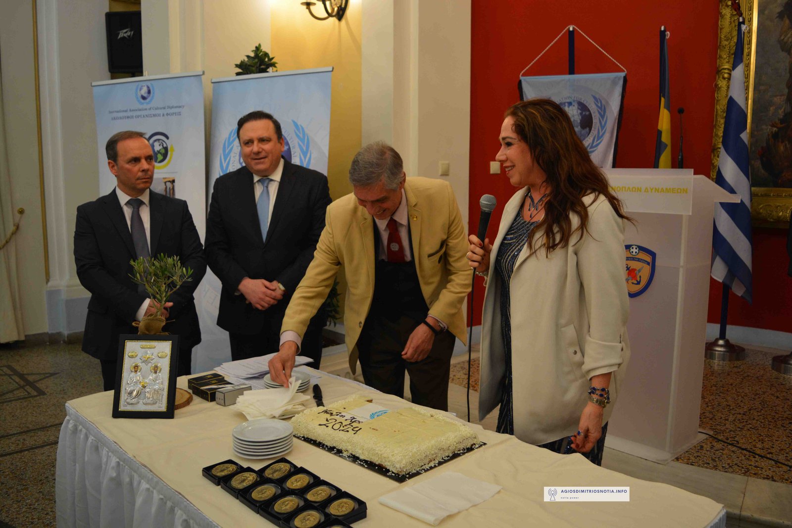 Στο χαιρετισμό του ο Καθηγητής Πρέσβης του Διεθνούς Δικαίου του Οργανισμού για την Πολιτιστική Διπλωματία Δρ Σταμάτιος Γεωργούλης αφού μετέφερε δια ζώσης τις ευχές του Οικουμενικού Πατριάρχη για υγεία και μακροημέρευση τον οποίο συνάντησε αυτοπροσώπως στην Ίμβρο στις 20 Ιανουαρίου 2024, τόνισε ότι ύψιστος στόχος του Οργανισμού είναι να προαγάγει τις αρχές και τα ιδεώδη της ειρήνης και της ειρηνικής συνύπαρξης μεταξύ όλων των λαών της υφηλίου με γνώμονα και με βάσει τις αρχές του Διεθνούς Δικαίου.