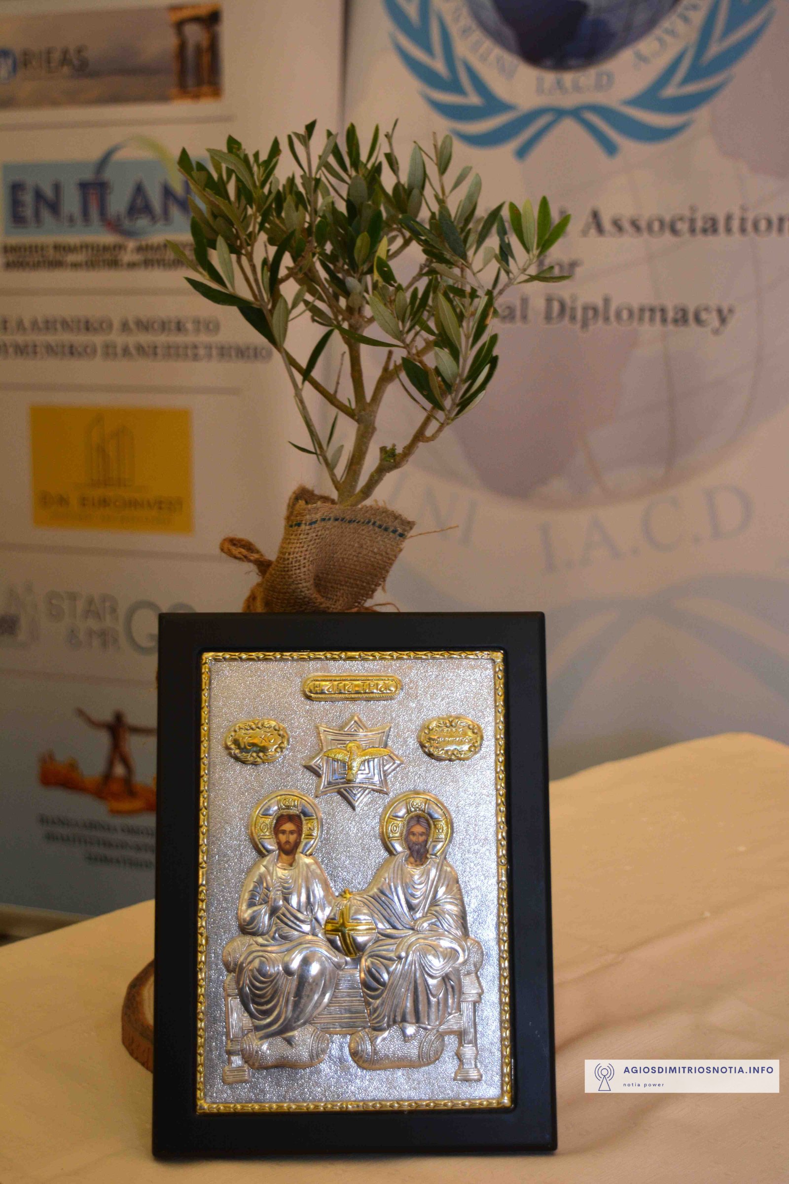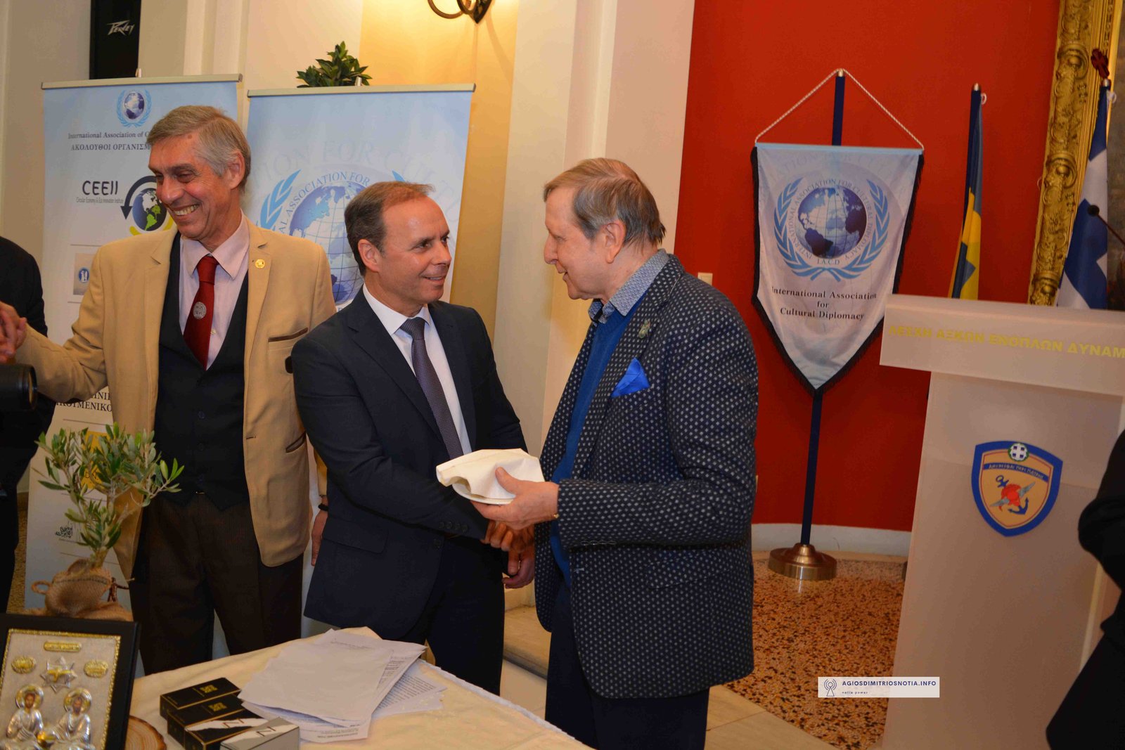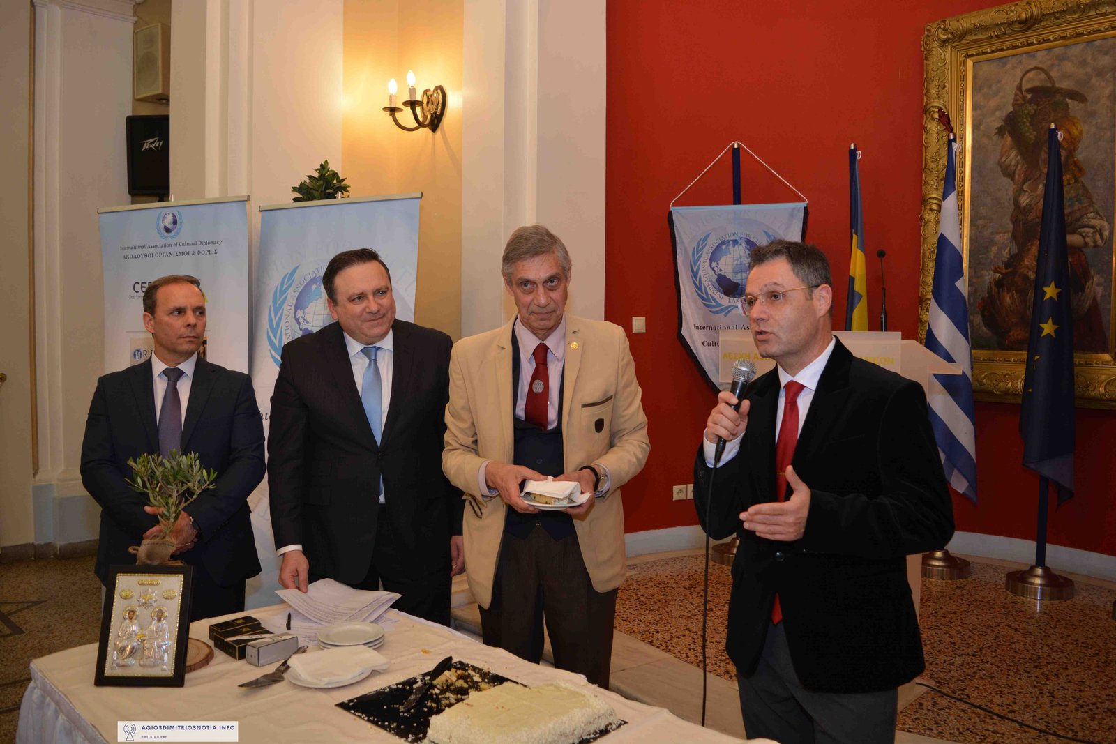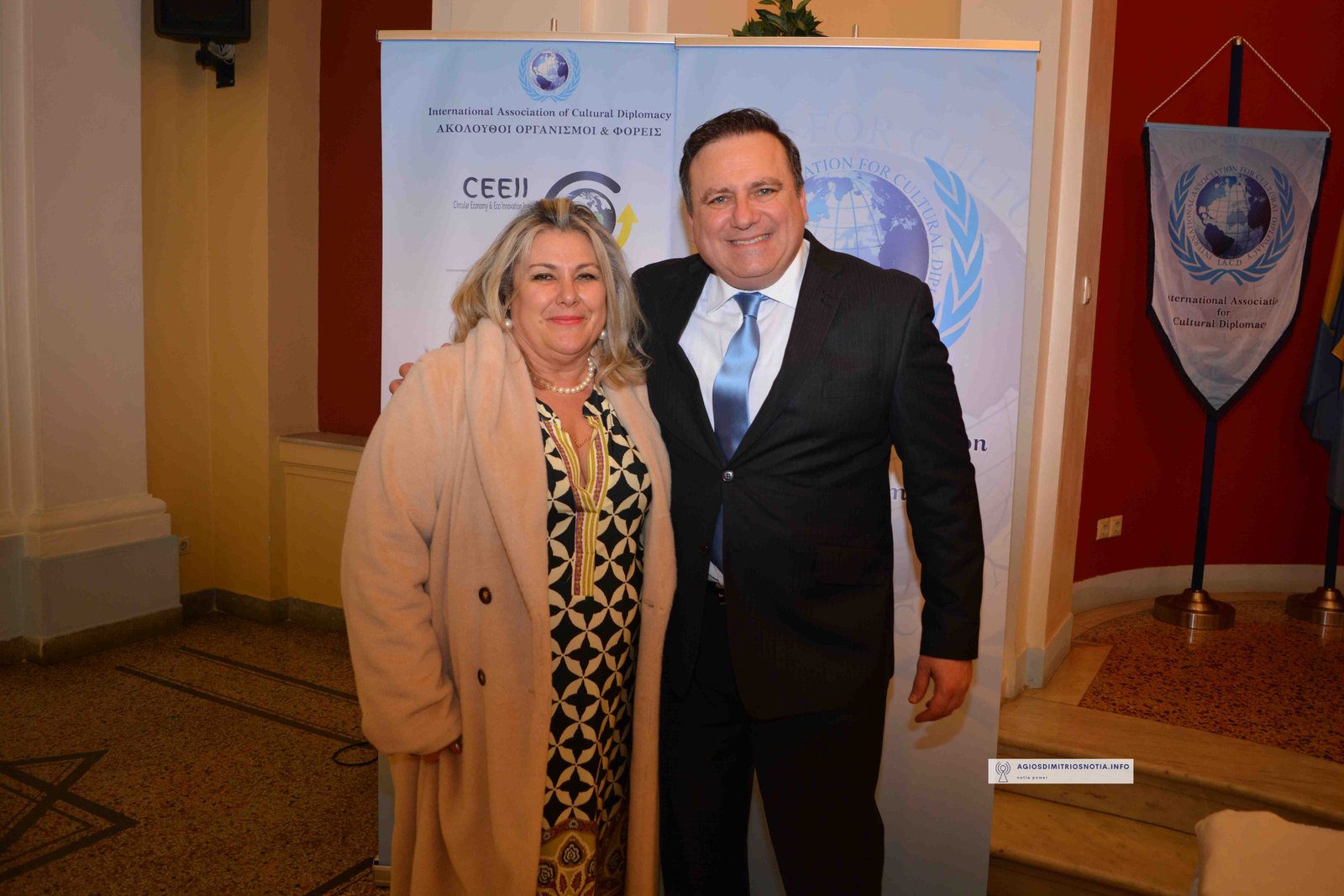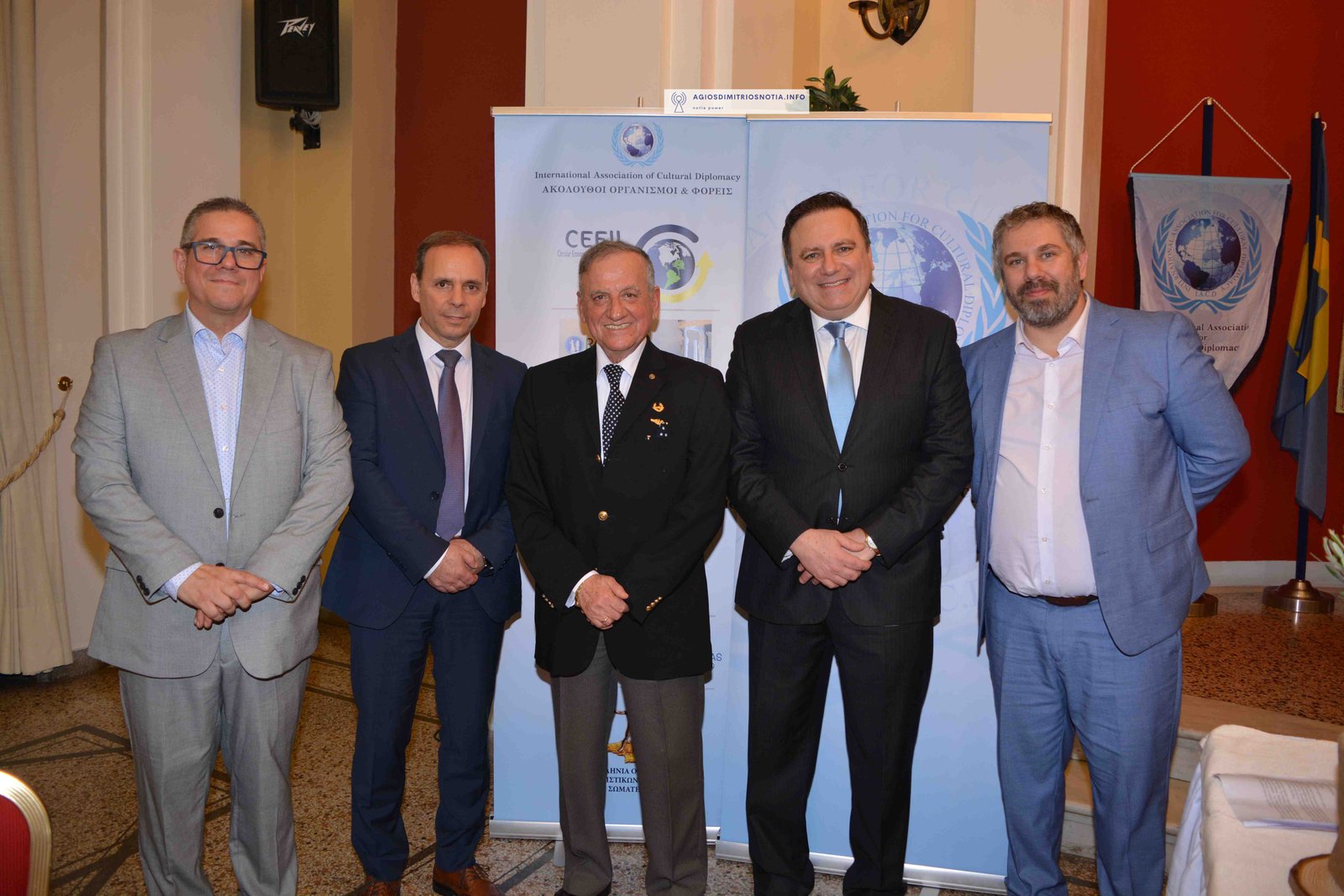 Στο χαιρετισμό του ο Καθηγητής Πρέσβης του Διεθνούς Δικαίου του Οργανισμού για την Πολιτιστική Διπλωματία Δρ Σταμάτιος Γεωργούλης αφού μετέφερε δια ζώσης τις ευχές του Οικουμενικού Πατριάρχη για υγεία και μακροημέρευση τον οποίο συνάντησε αυτοπροσώπως στην Ίμβρο στις 20 Ιανουαρίου 2024, τόνισε ότι ύψιστος στόχος του Οργανισμού είναι να προαγάγει τις αρχές και τα ιδεώδη της ειρήνης και της ειρηνικής συνύπαρξης μεταξύ όλων των λαών της υφηλίου με γνώμονα και με βάσει τις αρχές του Διεθνούς Δικαίου.