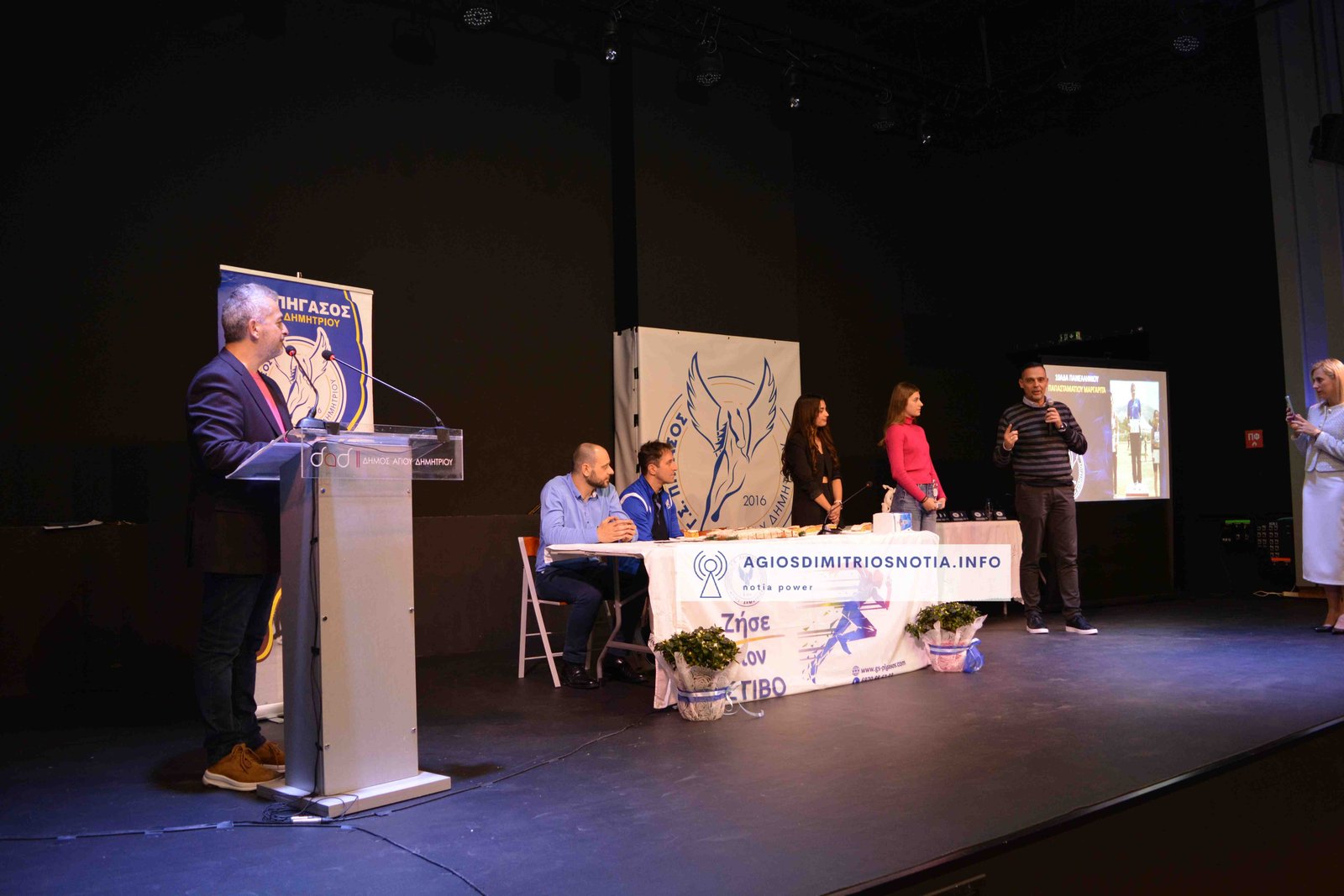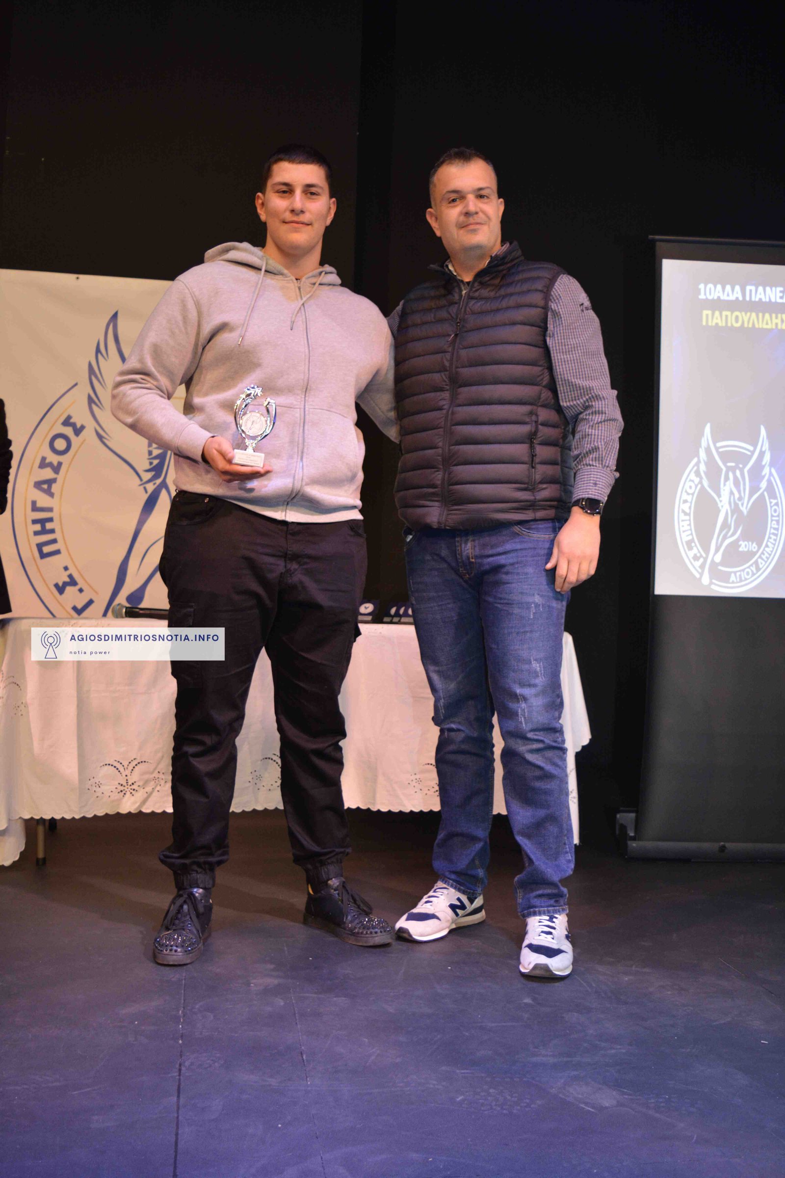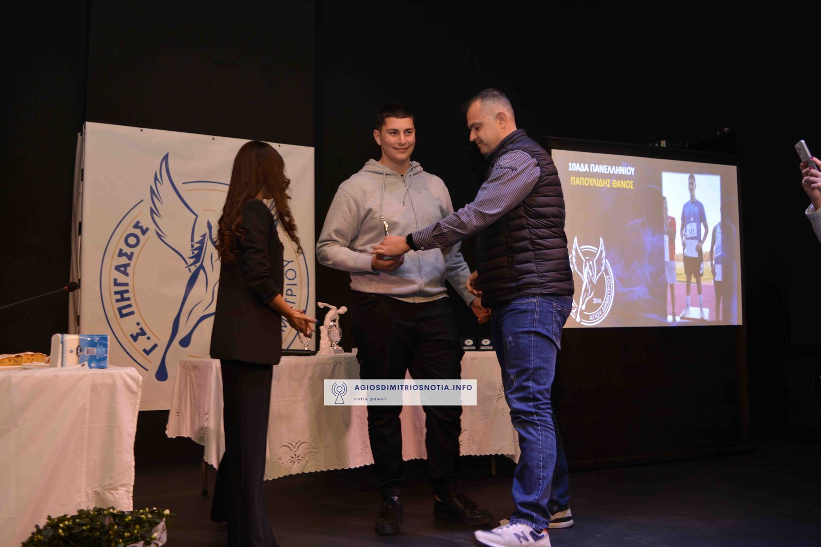 Τιμητικές πλακέτες απονεμήθηκαν στην κα Παναγιωτοπούλου Βασιλική για την πολυετή προσφορά της στον ελληνικό αθλητισμό και στον πρώην πρωταθλητή και κάτοχο μέχρι σήμερα του Πανελληνίου ρεκόρ στον Μαραθώνιο κ. Ανδριόπουλο Σπύρο για τις επιτυχίες του στον Κλασσικό Αθλητισμό.