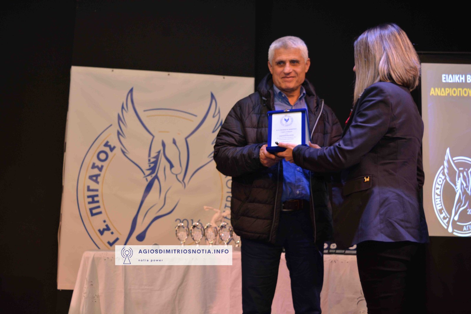 Το τμήμα Ρίψεων του συλλόγου μετά της προπονήτριάς του απένειμε αναμνηστικό αγαλματίδιο στο νεοεκλεγέντα Δήμαρχο Αγίου Δημητρίου κ. Στυλιανός Μαμαλάκης και του ευχήθηκαν καλή θητεία και δύναμη στο έργο του.