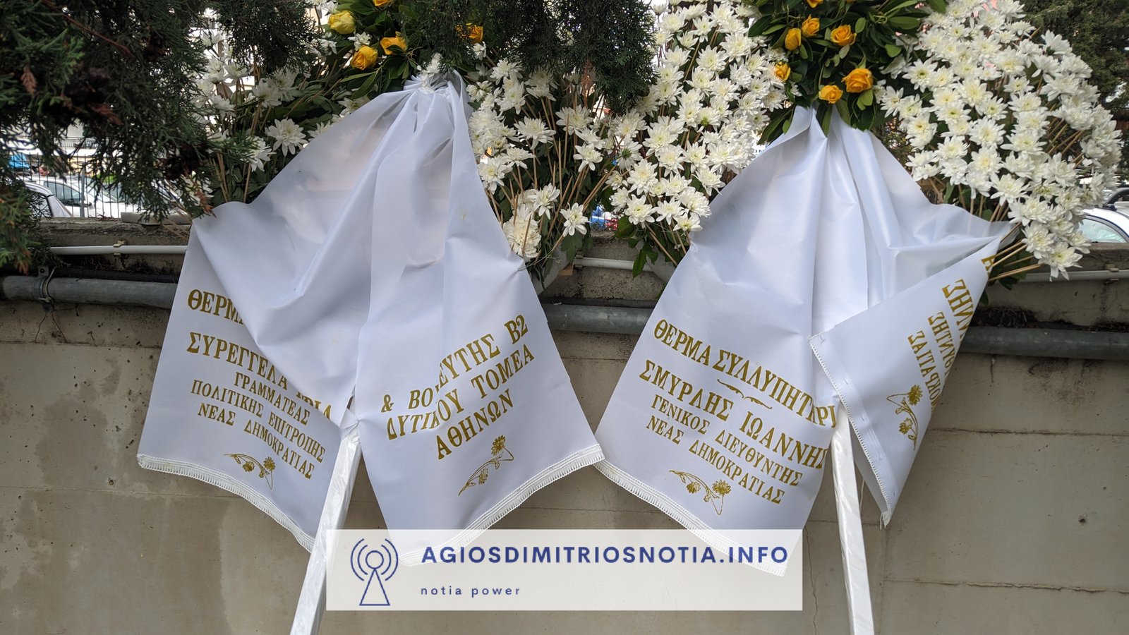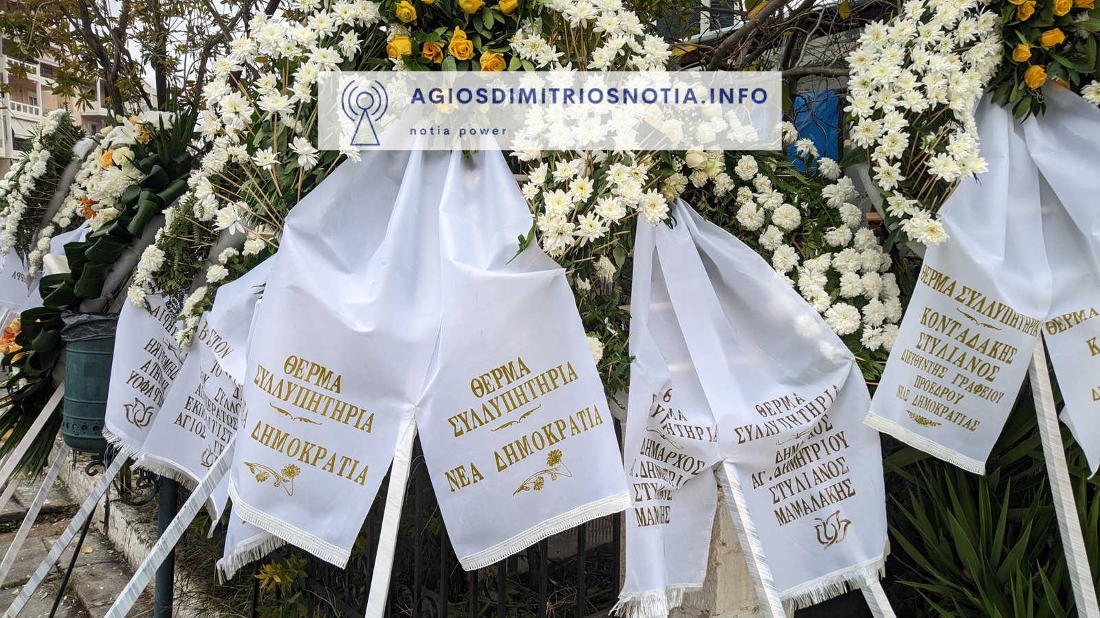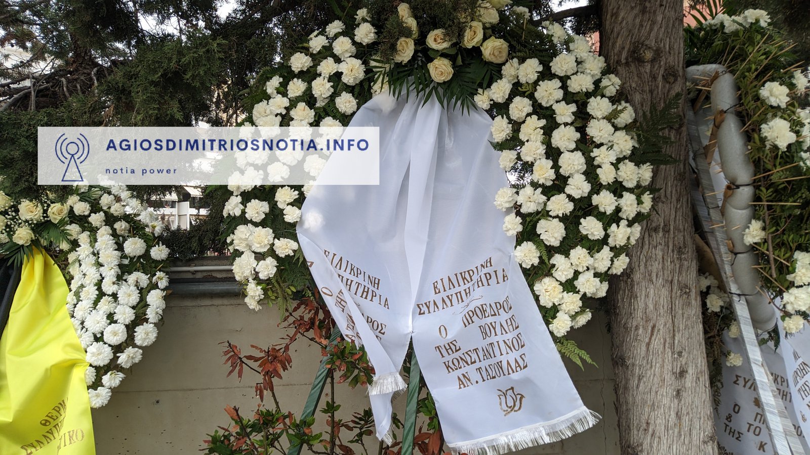 Στεφάνι έστειλαν, μεταξύ άλλων, ο πρωθυπουργός Κυριάκος Μητσοτάκης, ο Υπουργός Εθνικής Άμυνας Νίκος Δένδιας, ο υπουργός Παιδείας, Κυριάκος Πιερρακάκης, ο υφυπουργός Οικονομικών, Χάρης Θεοχάρης, ο Γραμματέας Οργανωτικού της Ν.Δ. Στέλιος Κονταδάκης, η Νέα Δημοκρατία, ο γενικός διευθυντής της Ν.Δ. Γιάννης Σμυρλής, ο πρώην περιφερειάρχης Γιώργος Πατούλης, ο δήμαρχος Αθήνας, Χάρης Δούκας, ο Δήμαρχος Ελληνικού – Αργυρούπολης Γιάννης Κωνσταντάτος, ο Δήμαρχος Αγίου Δημητρίου Στέλιος Μαμαλάκης , η Β3 Δ.Ε.Ε.Π. Νοτίου Τομέα Αθηνών, το ΠΑ.ΣΟ.Κ., το Δ.Σ. του Α.Ο. Ηλυσιακού, σύλλογοι κ.α.