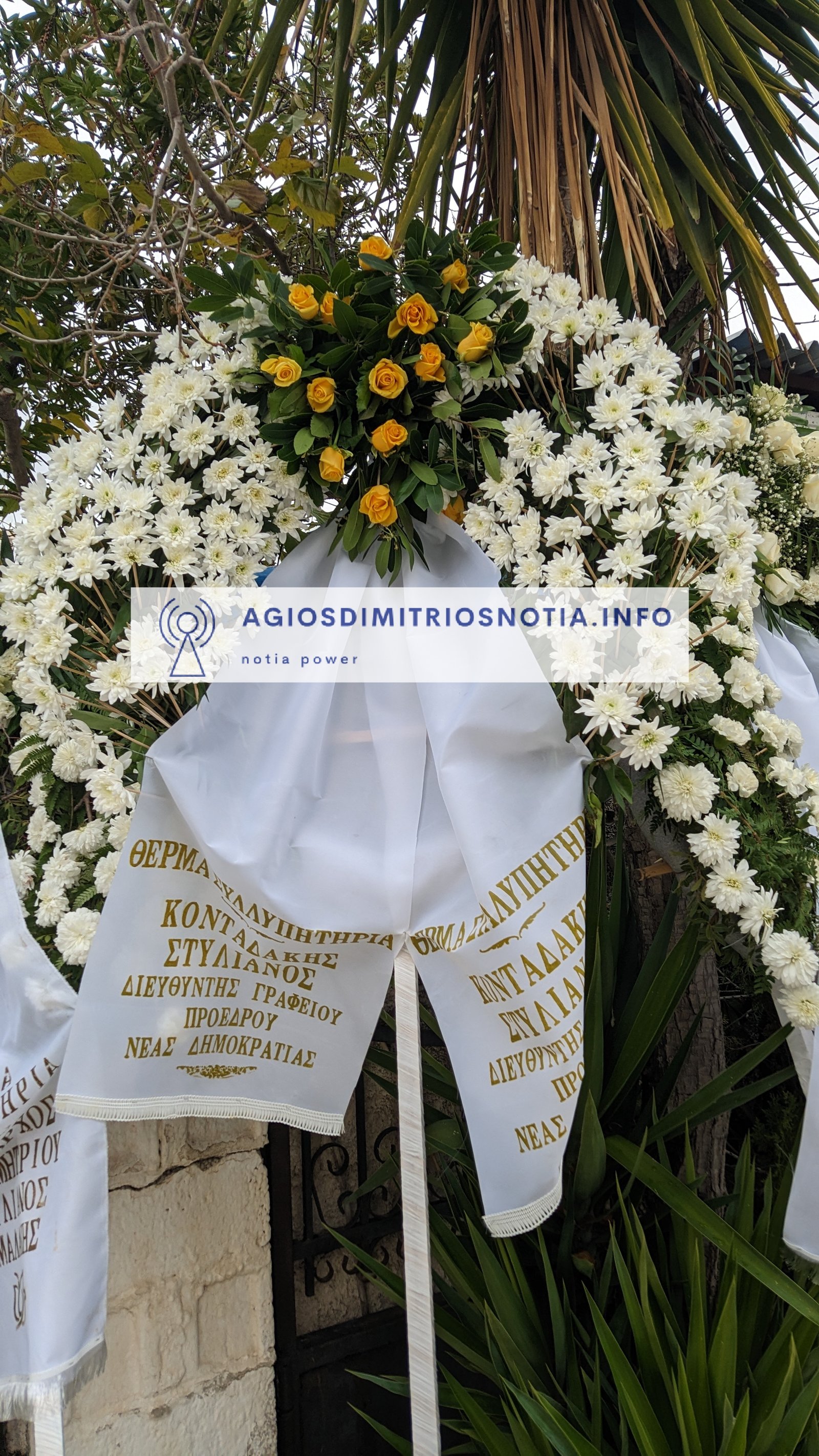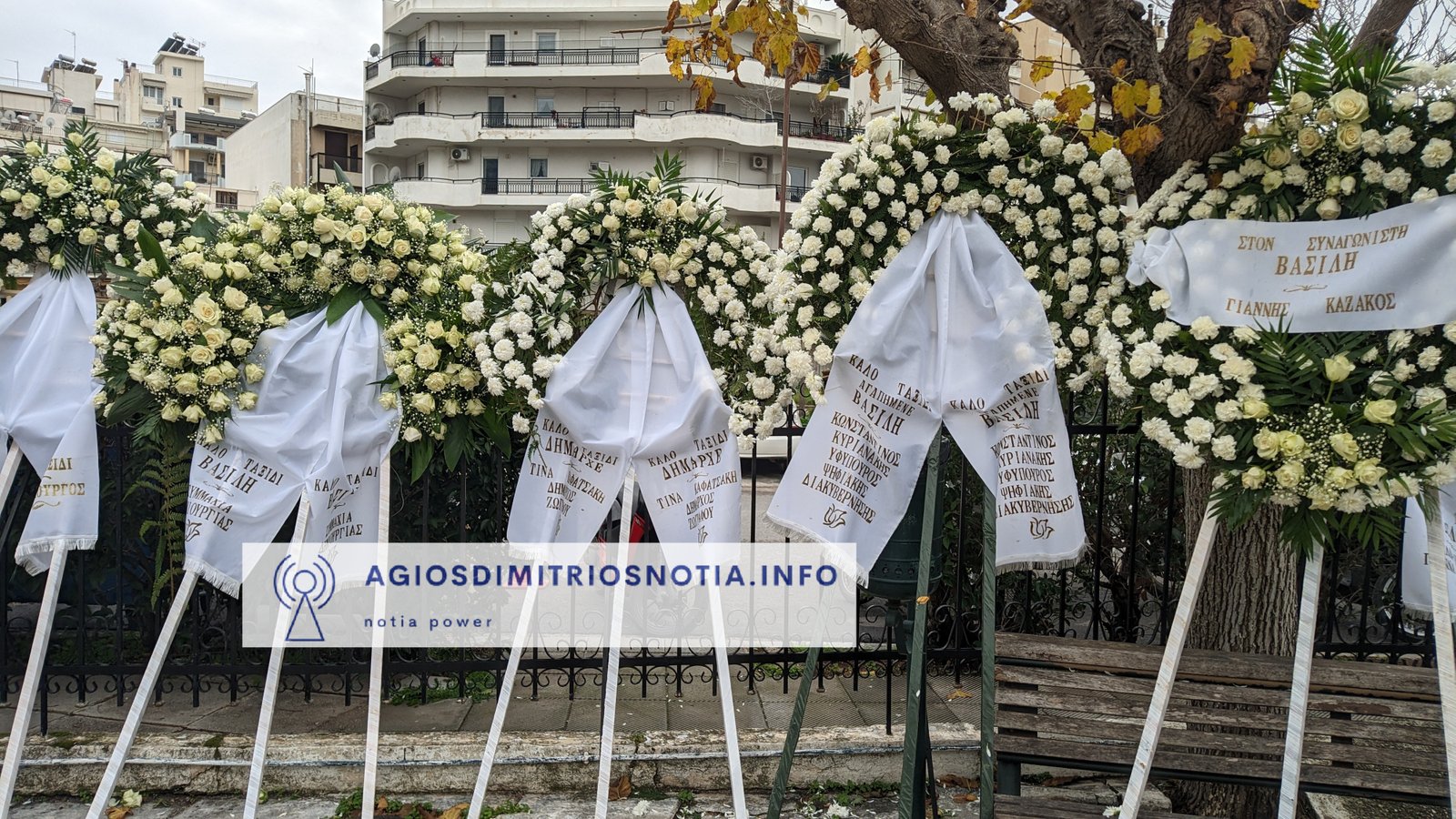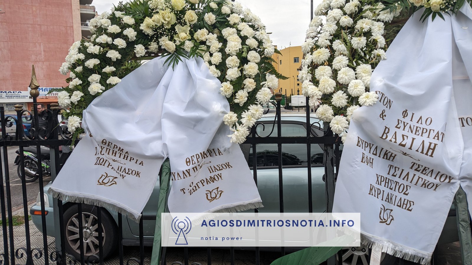 Στεφάνι έστειλαν, μεταξύ άλλων, ο πρωθυπουργός Κυριάκος Μητσοτάκης, ο Υπουργός Εθνικής Άμυνας Νίκος Δένδιας, ο υπουργός Παιδείας, Κυριάκος Πιερρακάκης, ο υφυπουργός Οικονομικών, Χάρης Θεοχάρης, ο Γραμματέας Οργανωτικού της Ν.Δ. Στέλιος Κονταδάκης, η Νέα Δημοκρατία, ο γενικός διευθυντής της Ν.Δ. Γιάννης Σμυρλής, ο πρώην περιφερειάρχης Γιώργος Πατούλης, ο δήμαρχος Αθήνας, Χάρης Δούκας, ο Δήμαρχος Ελληνικού – Αργυρούπολης Γιάννης Κωνσταντάτος, ο Δήμαρχος Αγίου Δημητρίου Στέλιος Μαμαλάκης , η Β3 Δ.Ε.Ε.Π. Νοτίου Τομέα Αθηνών, το ΠΑ.ΣΟ.Κ., το Δ.Σ. του Α.Ο. Ηλυσιακού, σύλλογοι κ.α.