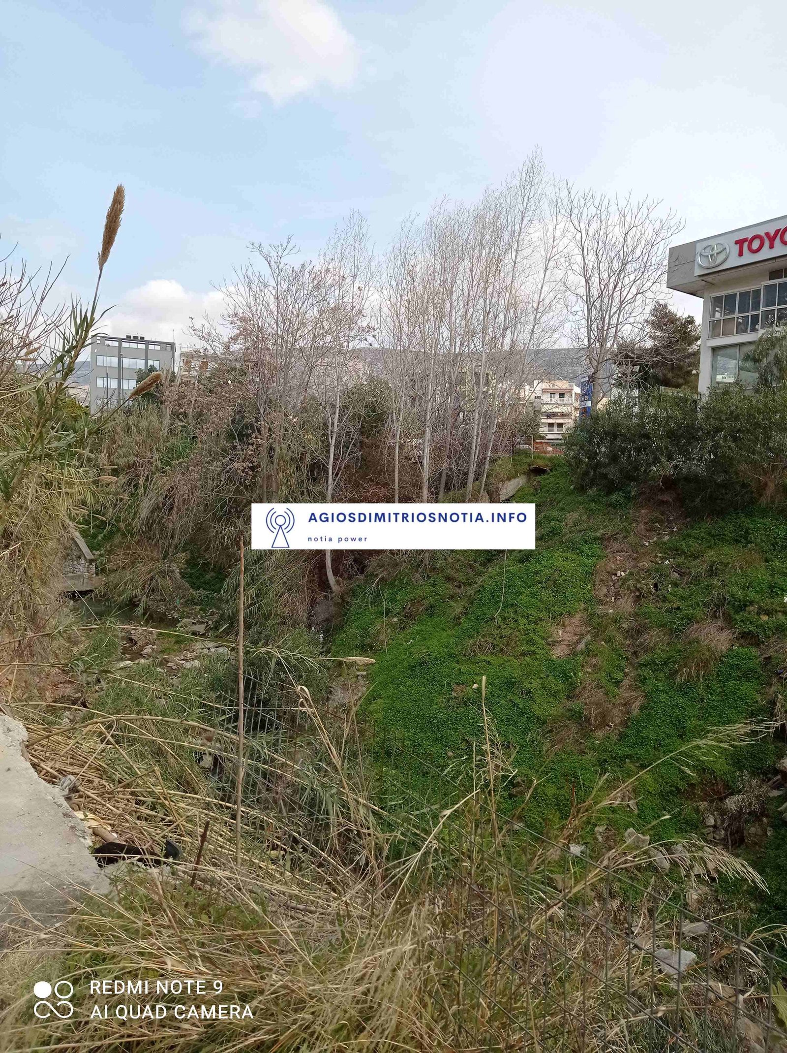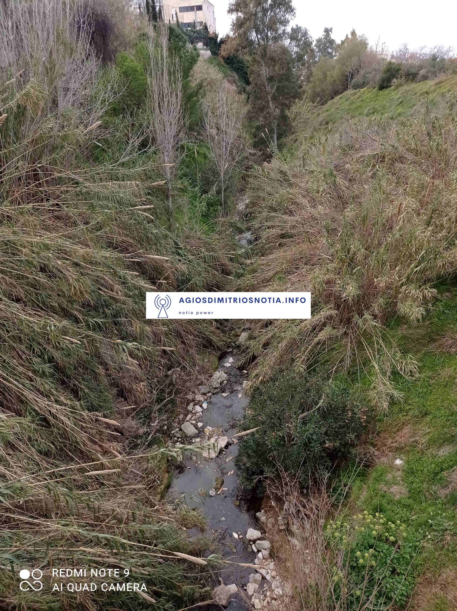 Υποβαθμισμένο το ρέμα. Κυκλωμένο από σπίτια, σκουπίδια, αυτοκίνητα συνεχίζει το σιωπηλό του ταξίδι το νερό μέχρι τη θάλασσα.